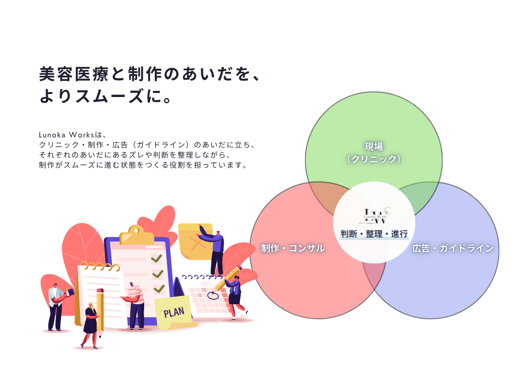クリニック運営と制作実務のあいだをつなぐサポートを行っています。